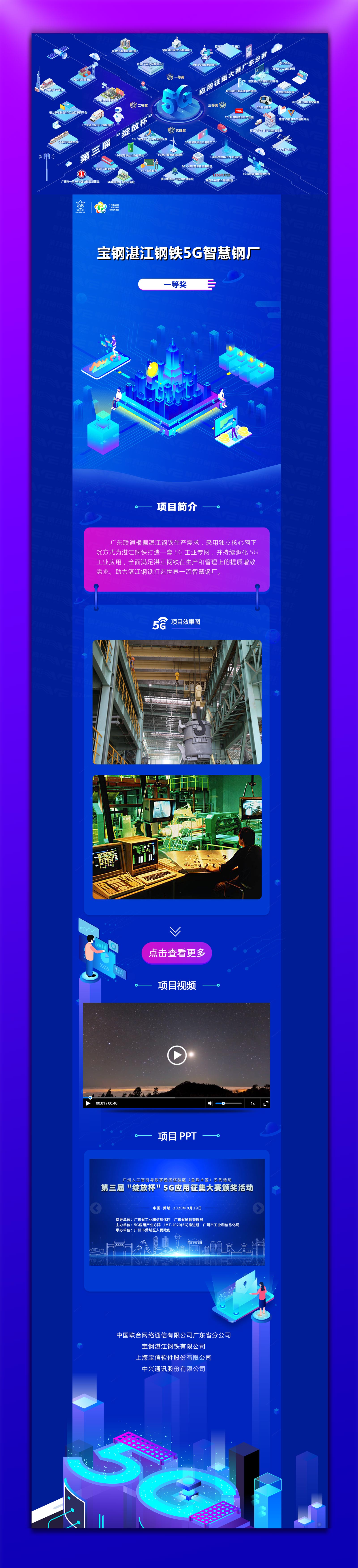 实地地产的5G全场景智能健康社区项目、广东联通的宝钢湛江钢铁5G智慧钢厂、招商局港口集团的招商港口5G智慧港口项目以及广东移动的全球5G智能制造商用标杆项目等获奖项目代表先后进行精彩路演。会场外还设置了成果集中展示,让参观者能更深入了解获奖项目情况、更全面感受广东5G魅力。