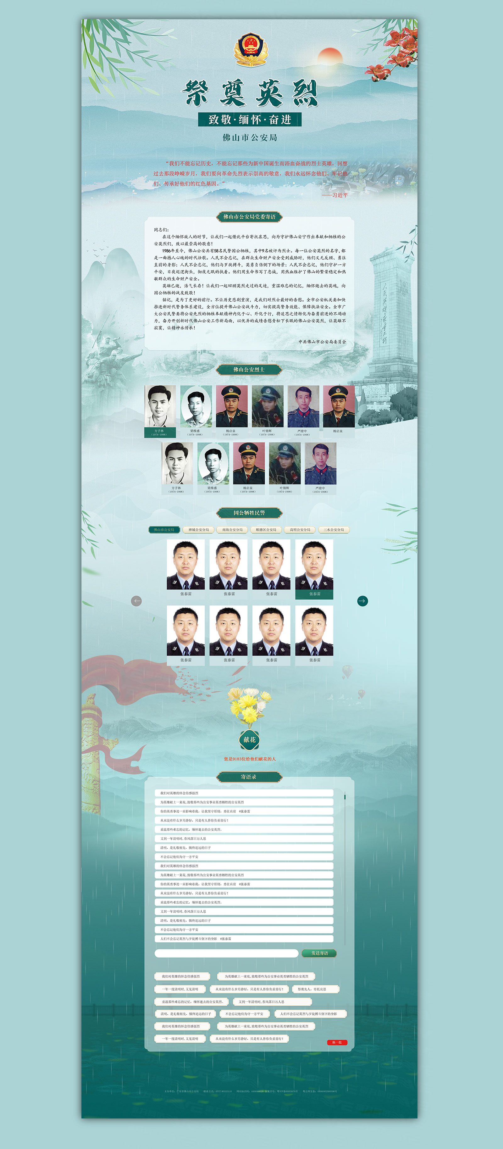 在这个缅怀故人的时节,让我们一起借此平台寄托哀思,向为守护佛山安宁作出奉献和牺牲的公安英烈们,致以最崇高的敬意!
